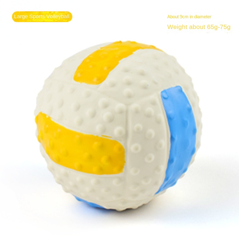 NON-TOXIC & DURABLE: Squeaky dog toys balls comply with the exact same safety standard as children’s toys. These small squeaky balls for dogs are no harmful chemicals such as BPA; lead; or phthalates in our toys. Charming pet latex dog toy are bouncy enough to excite your pet and stretchy enough for him/her to get a good grip with mouth.SOFT NATURAL RUBBER: Natural Soft Dog Toys Ball are made from 100% natural rubber latex. It is very pliable and a soft but durable latex on dog’s teeth; jaws and mouth. Dog squeaky chew toy ball is durable and will simply reinflate after your dog grabs it. It's also easy to clean.PERFECT FOR SMALL MEDIUM DOGS BUT NOT AGGRESSIVE CHEWERS: This soft; bouncy; squeaky rubber ball is 2.95 inches in diameter. It’s flexible enough for my small dog to grab comfortably. The weight of it is nice too; being just heavy enough that you can throw it well.PERFECT FOR PLAYING FETCH: This popular; squeaky dog toy is fun to play fetch with because of the ball shape (Yellow Soccer Ball; Volleyball; American Football; Blue Soccer Ball); it bounces unpredictably and surprises your dogs. They will absolutely LOVE playing with and chasing this soft; squeaky and bouncy ball; which will entertain your pup for hours. The perfect gift for every dog and dog lover in your life.GREAT VALUE & FUN: Dog Fetch Toy Ball Built-in Squeaker Makes Noise to Pique Dogs Curiosity; and Appeals to Their Natural Instincts to Hunt. Your pets will completely addicted to these small squeaky balls.