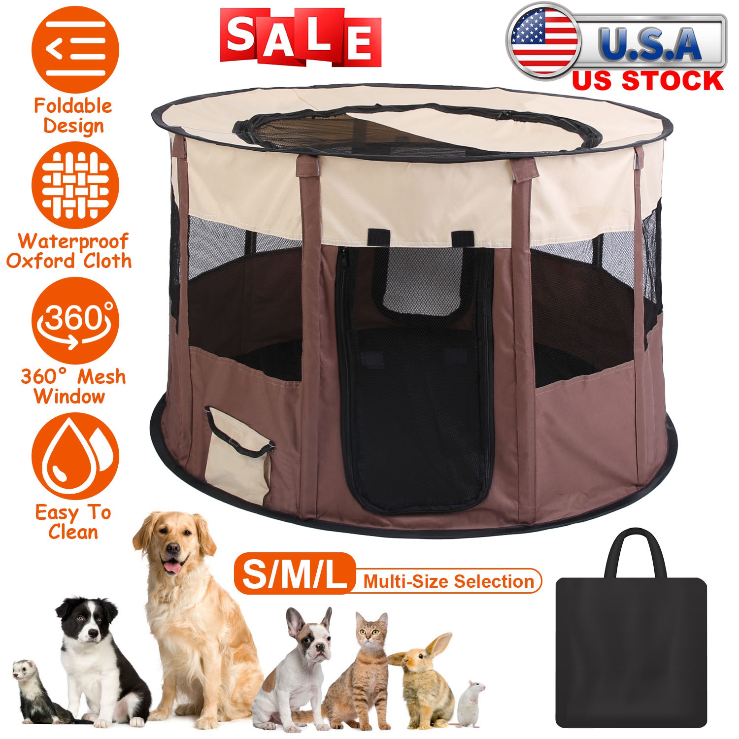 Home > Foldable Playpen for Dog with Carry Bag Portable Travel Waterproof Indoor Outdoor Pet Cage Tent Detachable Upper Cover For Dog Cat Rabbit